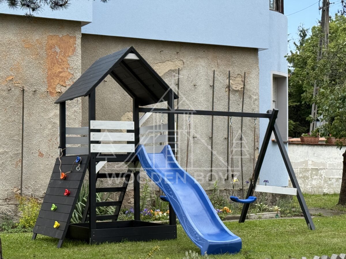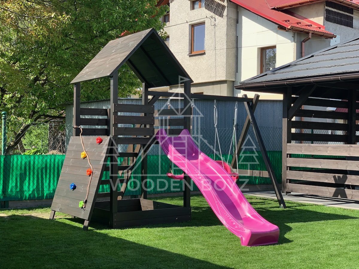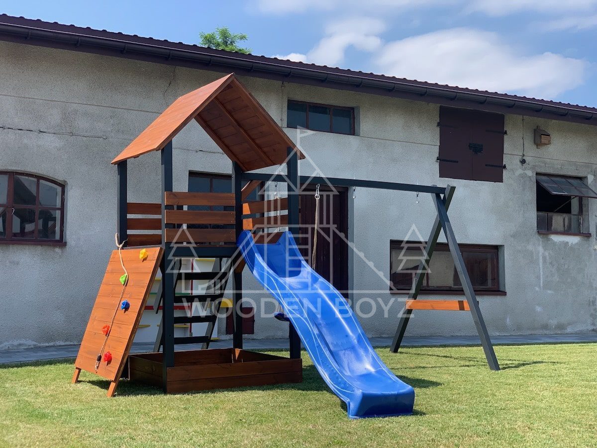 Plac zabaw Gaja to wyjątkowa przestrzeń zabawy i rozwoju, stworzona z myślą o radosnym dzieciństwie. Łączy w sobie trzy ulubione elementy każdego dziecka: huśtawki do beztroskiego bujania, bezpieczną zjeżdżalnię oraz piaskownicę do kreatywnych zabaw. Wykonany z najwyższej jakości certyfikowanego drewna sosnowego C24, stanowi idealne miejsce do aktywnego spędzania czasu na świeżym powietrzu.