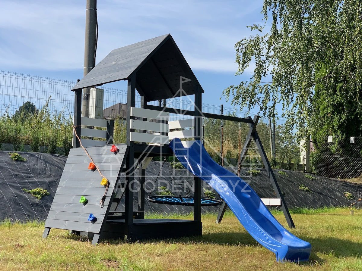 Plac zabaw Gaja to kompaktowy i funkcjonalny zestaw, który zapewnia dzieciom doskonałe warunki do aktywności na świeżym powietrzu.