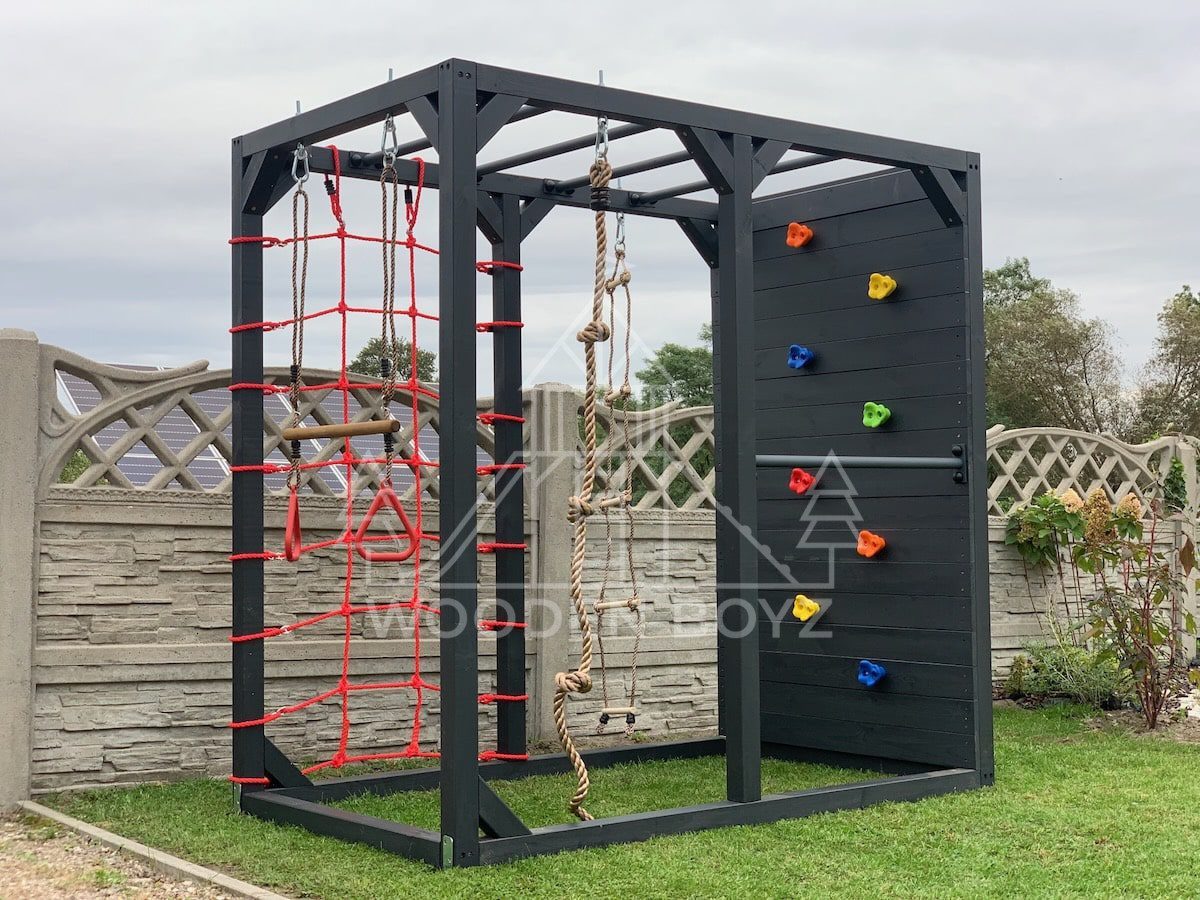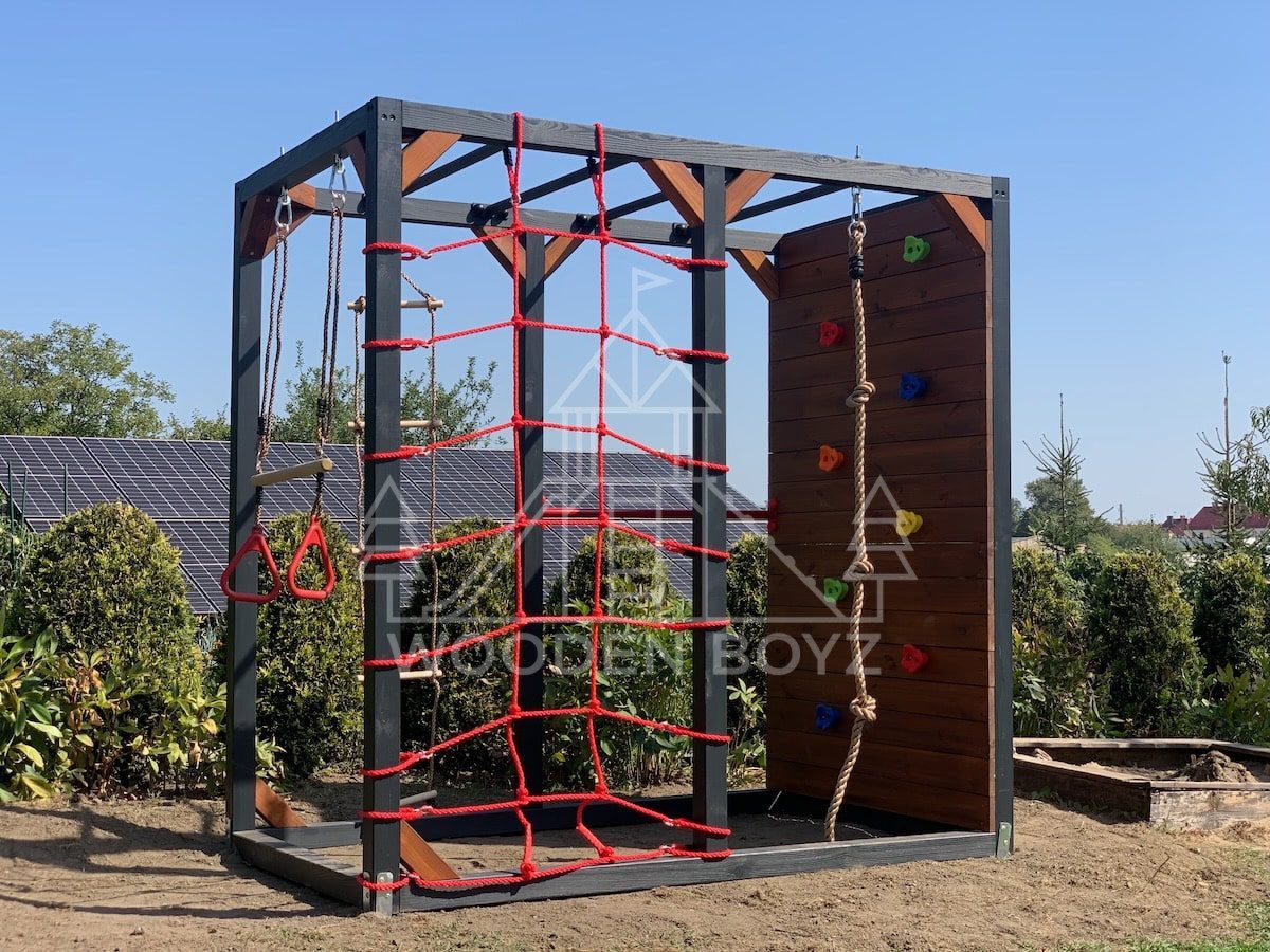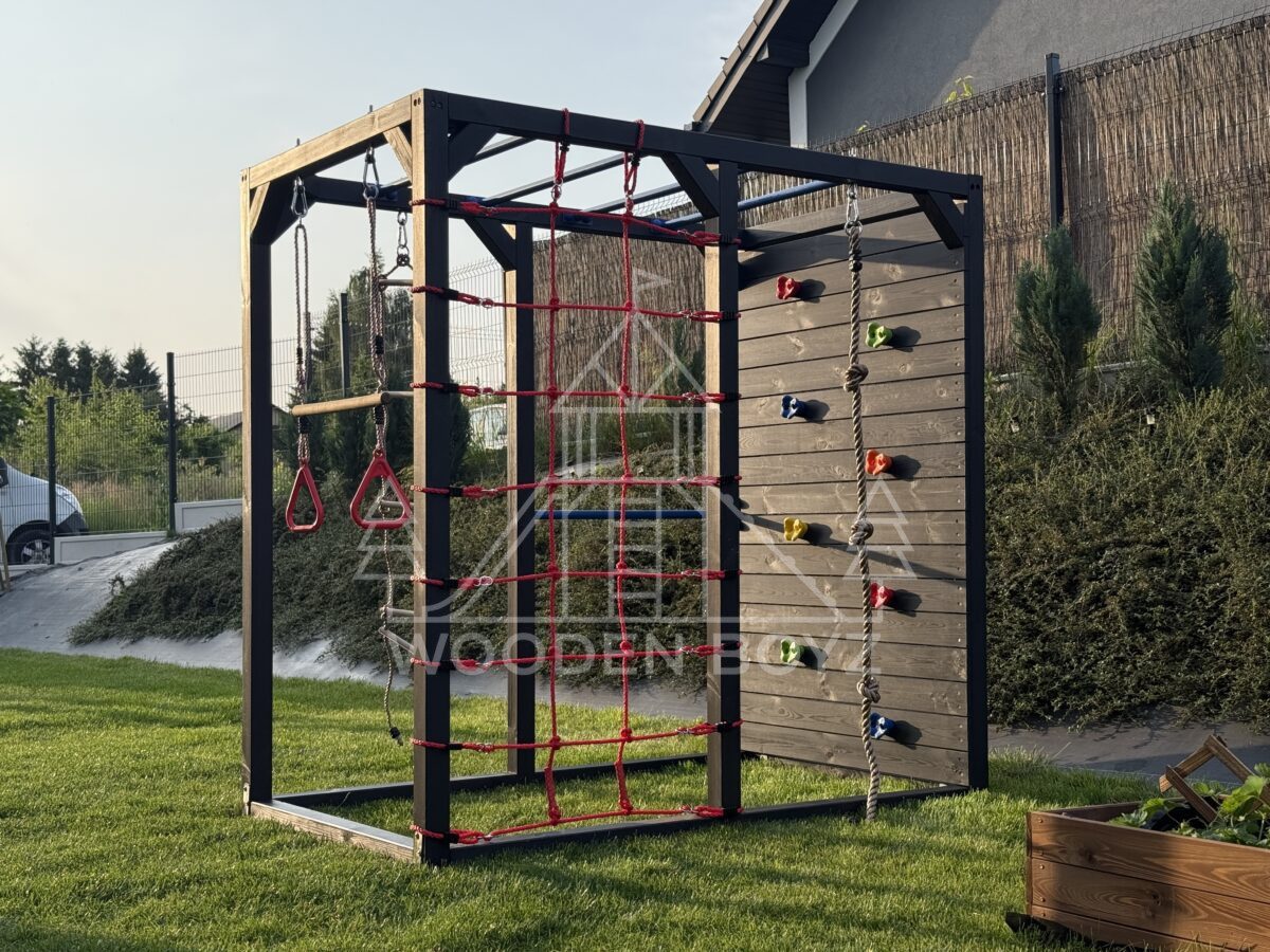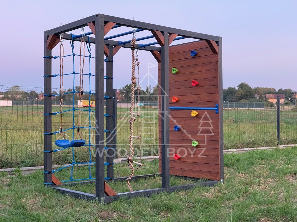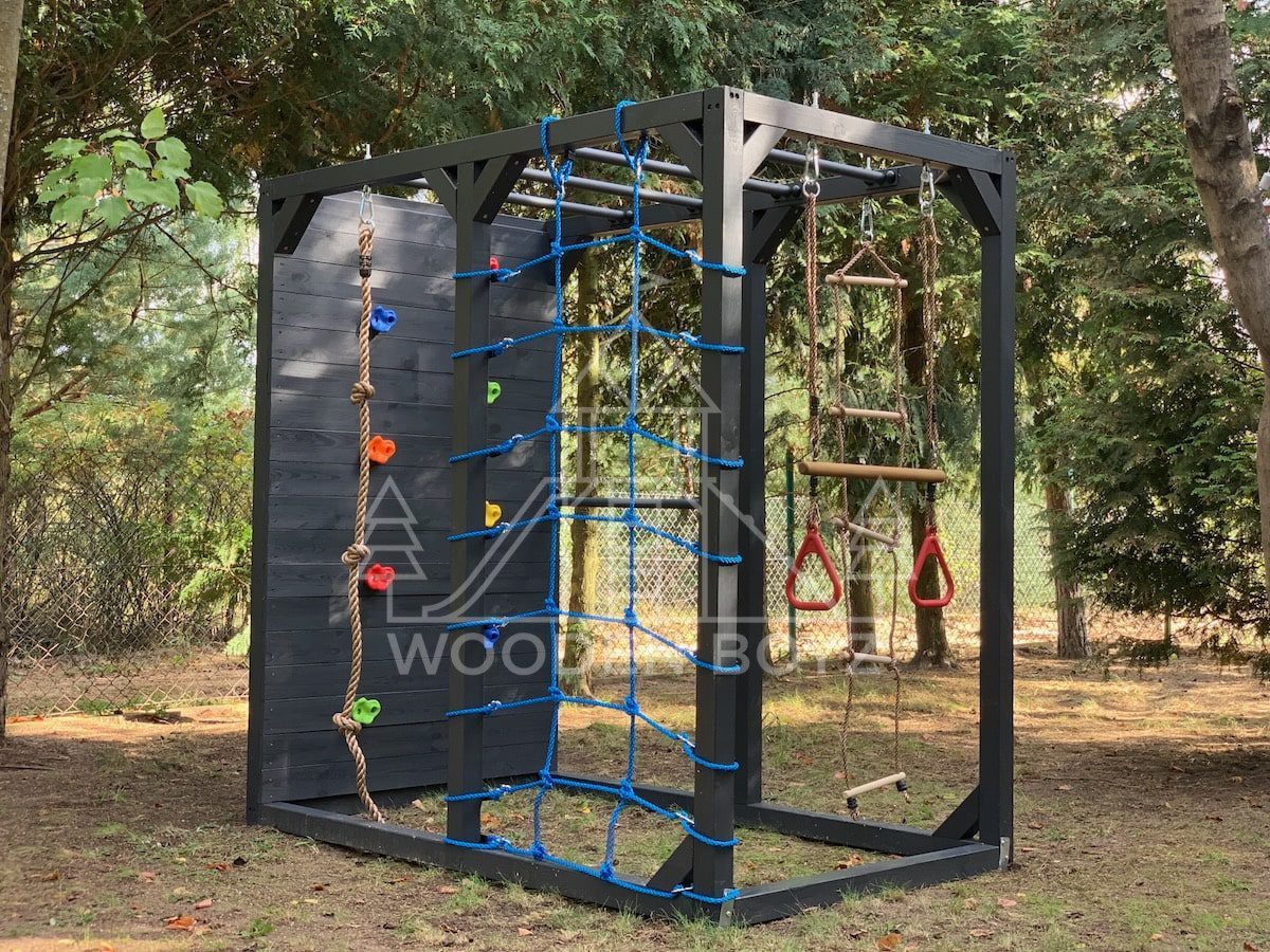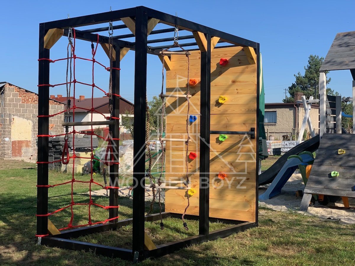 | Wyposażenie standardowe | Drążki w górnej części konstrukcji – idealne do wspinaczki i akrobacji Siatka do wspinaczki Drążek do akrobacji na wysokości 1 metra Wysoka ścianka wspinaczkowa Lina z węzłami Ruchoma drabinka Huśtawka (do wyboru: trapez, orczyk, huśtawka kubełkowa lub deseczka) Zestaw kotw wbijanych w ziemię – dla maksymalnej stabilności Impregnaty i akcesoria – szeroka paleta kolorów do wyboru |