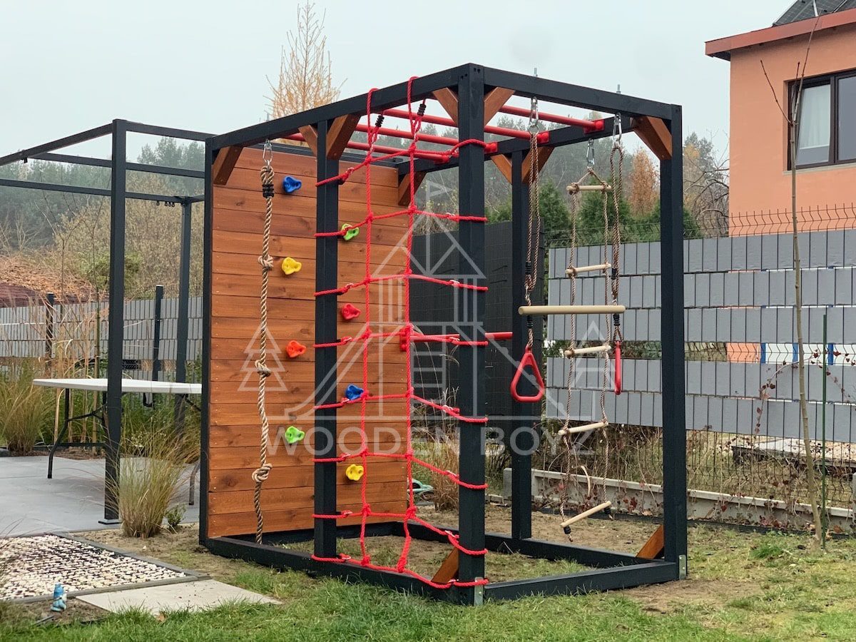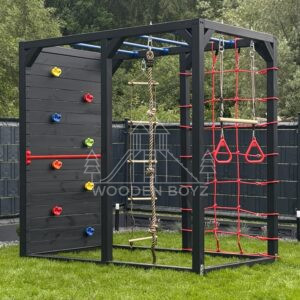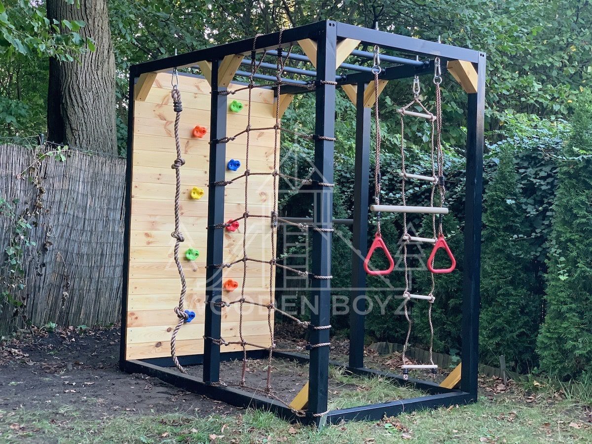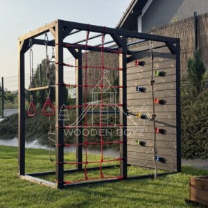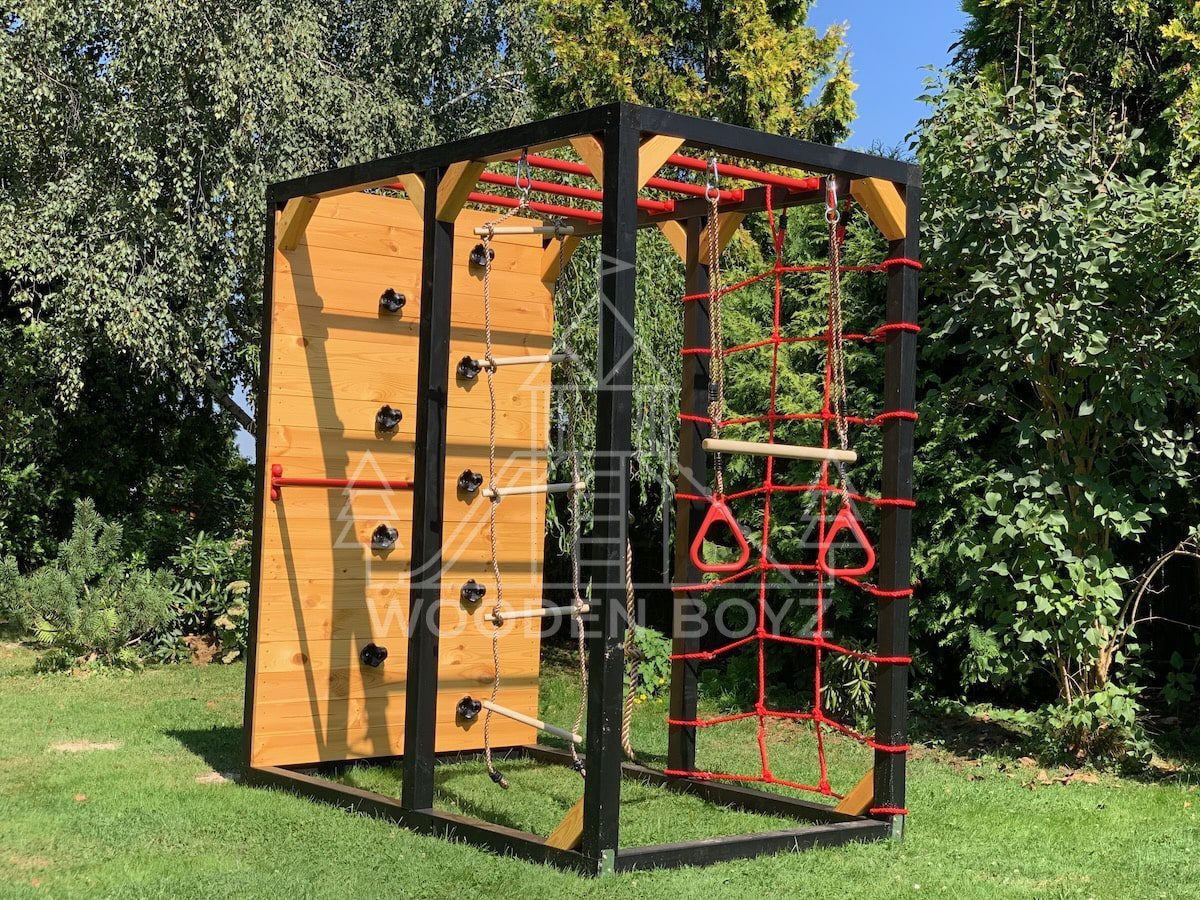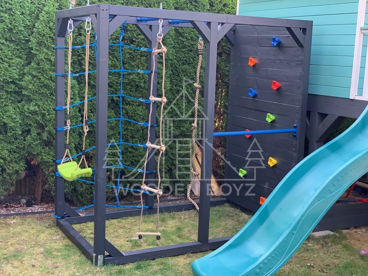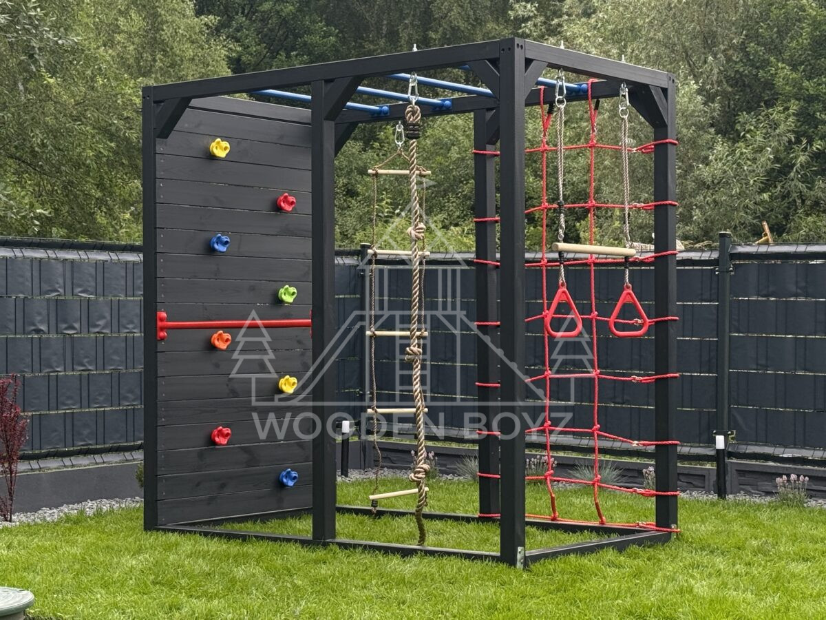 | Wyposażenie standardowe | Drążki w górnej części konstrukcji – idealne do wspinaczki i akrobacji Siatka do wspinaczki Drążek do akrobacji na wysokości 1 metra Wysoka ścianka wspinaczkowa Lina z węzłami Ruchoma drabinka Huśtawka (do wyboru: trapez, orczyk, huśtawka kubełkowa lub deseczka) Zestaw kotw wbijanych w ziemię – dla maksymalnej stabilności Impregnaty i akcesoria – szeroka paleta kolorów do wyboru |
