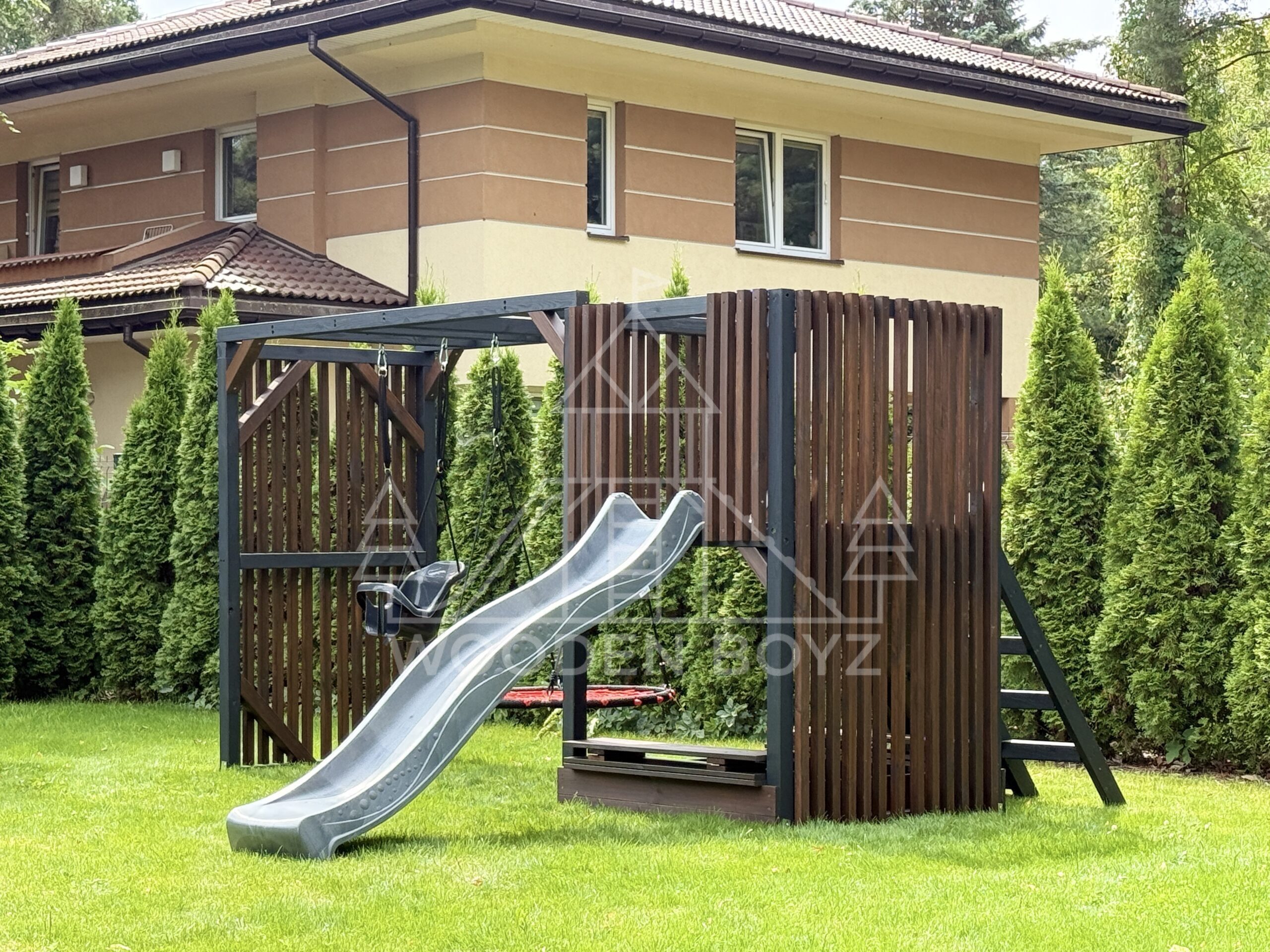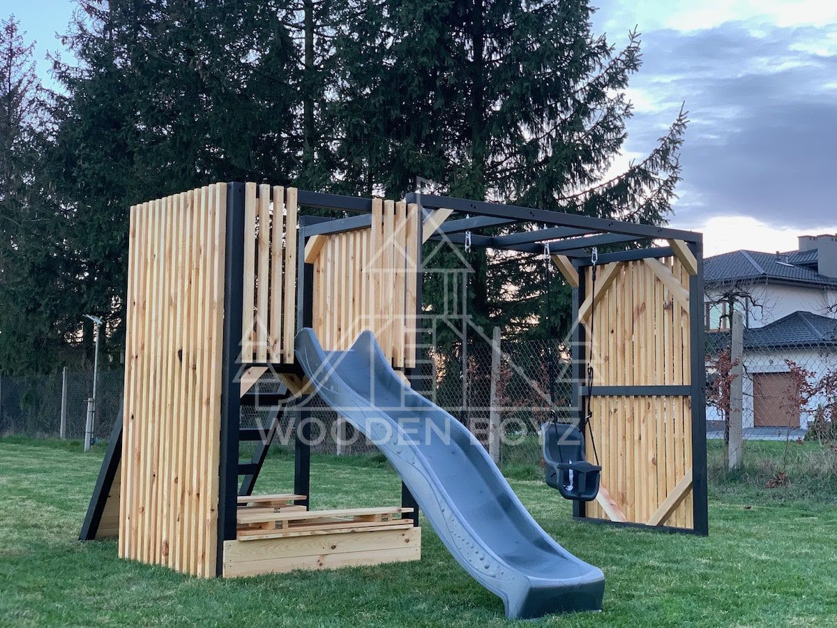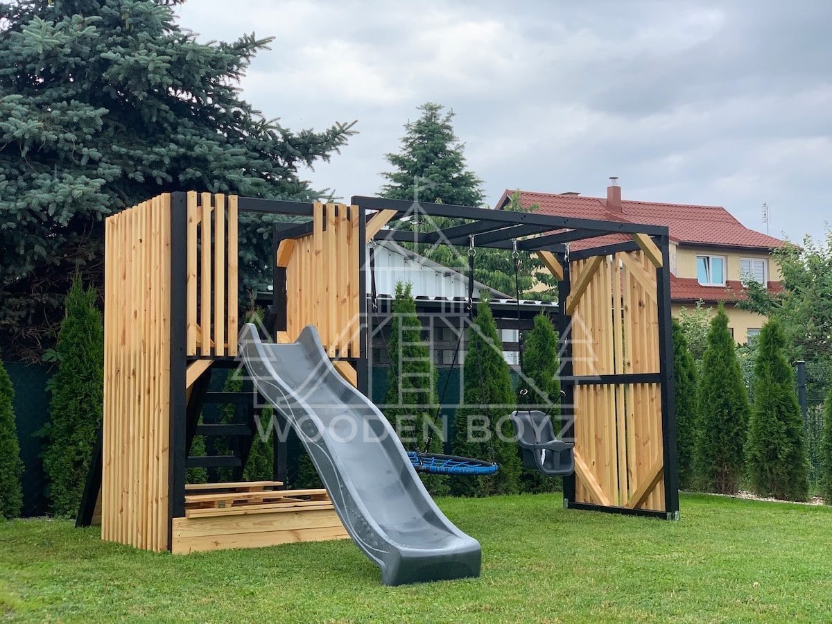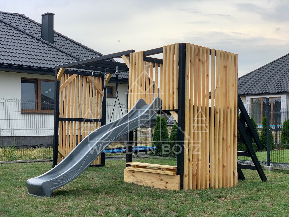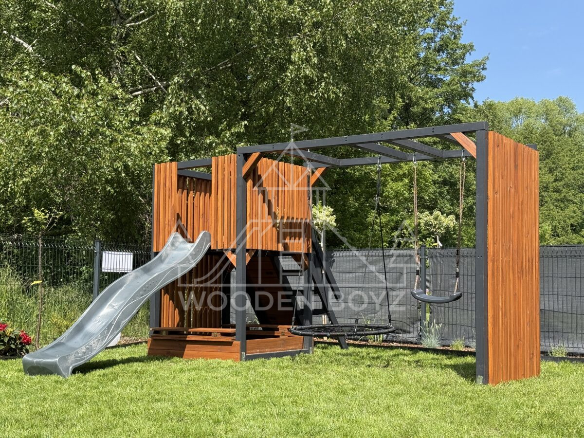 Model Maja to idealne połączenie funkcjonalności i estetyki. Dzięki zastosowaniu modnych lameli, doskonale wpasowuje się w nowoczesny styl ogrodu, oferując jednocześnie bezpieczne i atrakcyjne miejsce do zabawy dla Twojego dziecka.